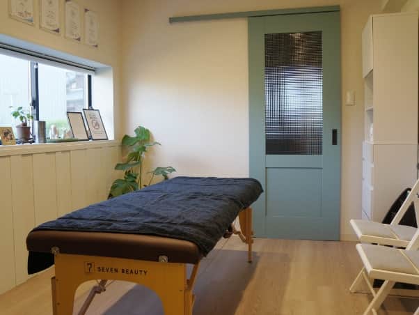 マッサージベッドとご家族に見て頂くための椅子をご用意しています。
